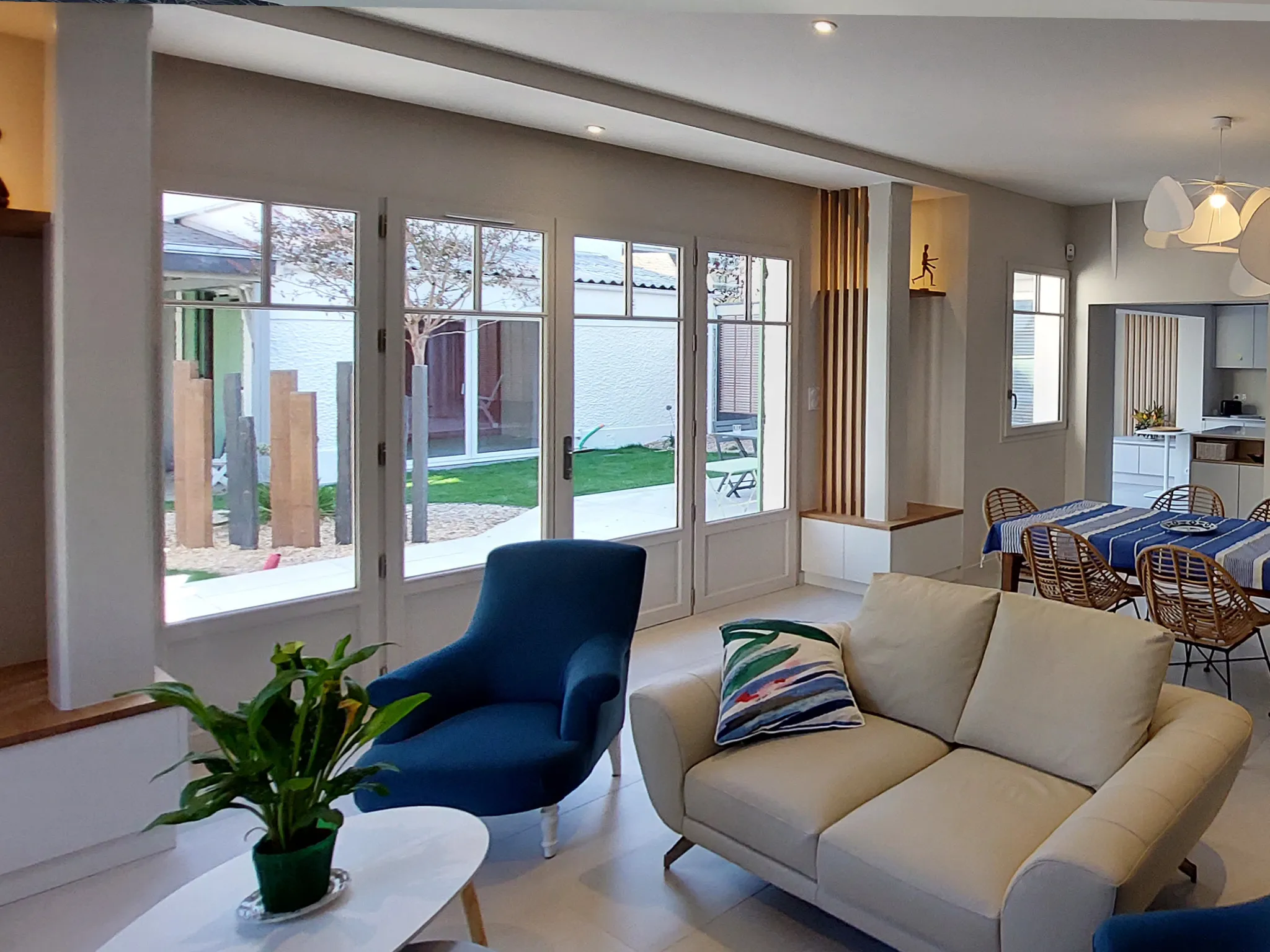 Rénovation complète d’une maison qui était à l’origine des anciennes écuries d’une villa à La Baule et de son annexe, nous avons tout repensé les espaces (dalles, plancher, escalier) afin de créer une vraie cohérence et harmonie dans cet espace.